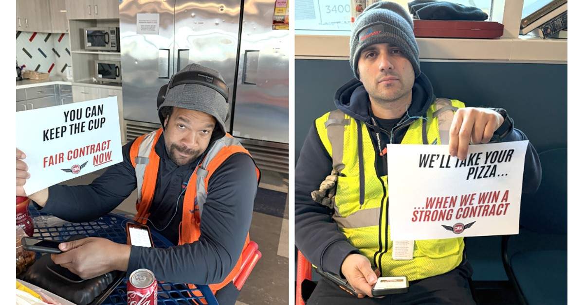 CWA Piedmont passenger service and ramp agents at Ronald Reagan Washington National Airport were awarded the quarterly Customer Cup from American Airlines for their excellence in operations and customer service. But over two and a half years into negotiations for a new contract, members of CWA Local 2252 told the company: You can keep the pizza party; we’ll take a fair contract instead.