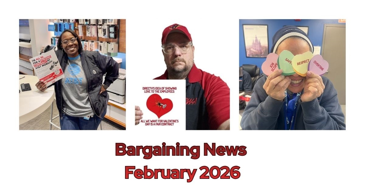 CWA’s Telecommunications and Technologies Bargaining Committee reached a tentative agreement with AT&T Legacy T in late January. The agreement includes “pay increases compounding over the life of the contract, improved healthcare options” as well as expanded bereavement leave and a ratification bonus. Read the update.