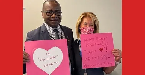 CWA Local 13301 agents at the Philadelphia Airport say "We have given our hearts, AA!"